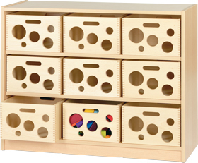 Møbler og løsninger som oppfyller alle tenkelige oppbevaringsbehov i barnehagen.