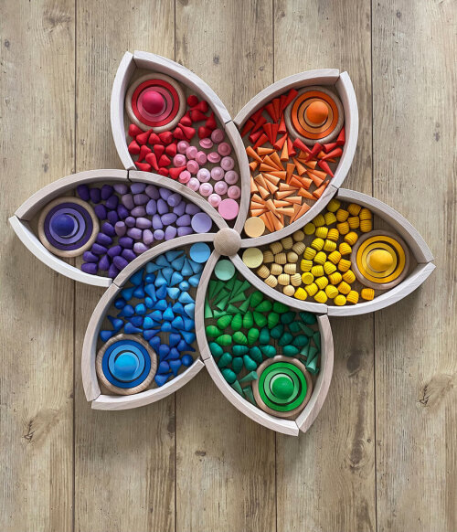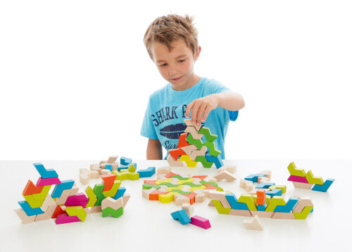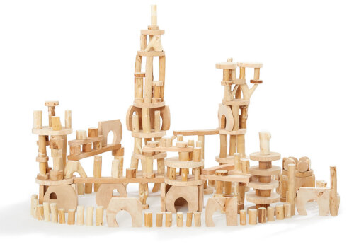 Fargede byggeklosser i tre, 500 deler