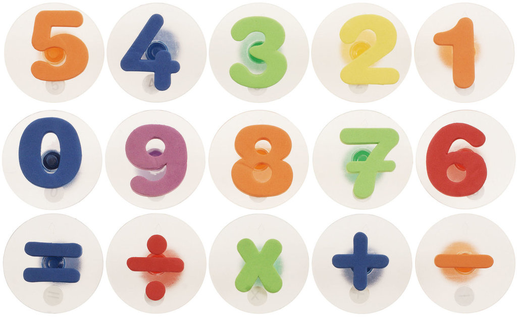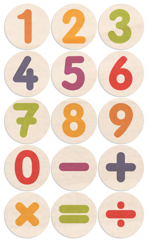 Trestempelsett tall & aritmetiske symboler ø 2 x H 3,5 cm, 15 stk
