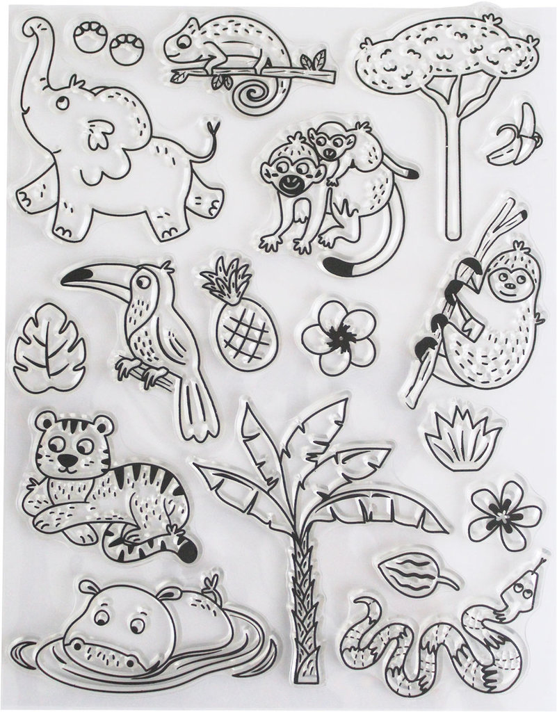 Silikonstempel i jungeldyr, str 1,5 - 10 cm 18 motiver