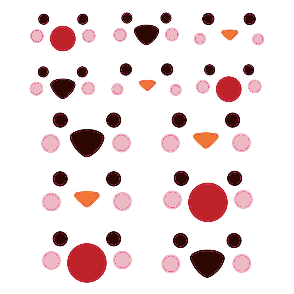 Klistremerker dyreansikter, selvklebende, 12 motiver, 1 ark