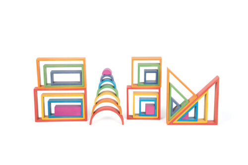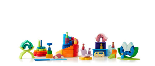 Utforsk en fargerik verden for fri lek med vårt utvalg av regnbueleker! Trofast mot Friedrich Fröbels læringstilnærming, "Lek er den høyeste formen for barns utvikling", kan vi skape hele verdener med våre leker. La leken bli ekstra gøy ved å kombinere våre produkter på kreative måter. Oppdag en verden av muligheter og la barna utforske, lære og leke fritt med våre regnbueleker!