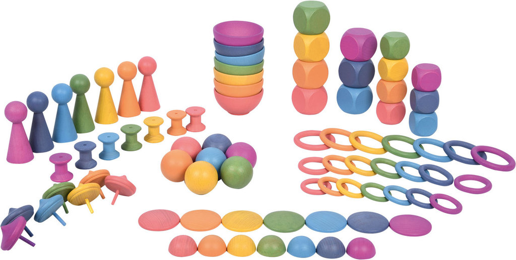 Utforsk en fargerik verden for fri lek med vårt utvalg av regnbueleker! Trofast mot Friedrich Fröbels læringstilnærming, "Lek er den høyeste formen for barns utvikling", kan vi skape hele verdener med våre leker. La leken bli ekstra gøy ved å kombinere våre produkter på kreative måter. Oppdag en verden av muligheter og la barna utforske, lære og leke fritt med våre regnbueleker!