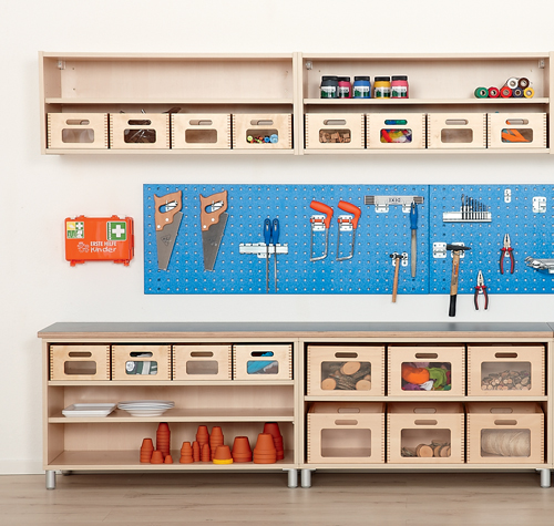 I denne kategorien vil du oppdage et univers av møbler for å innrede Verksteder og rom for kreativ utfoldelse. Rom tilrettelagt for barns behov for å eksperimentere og skape.