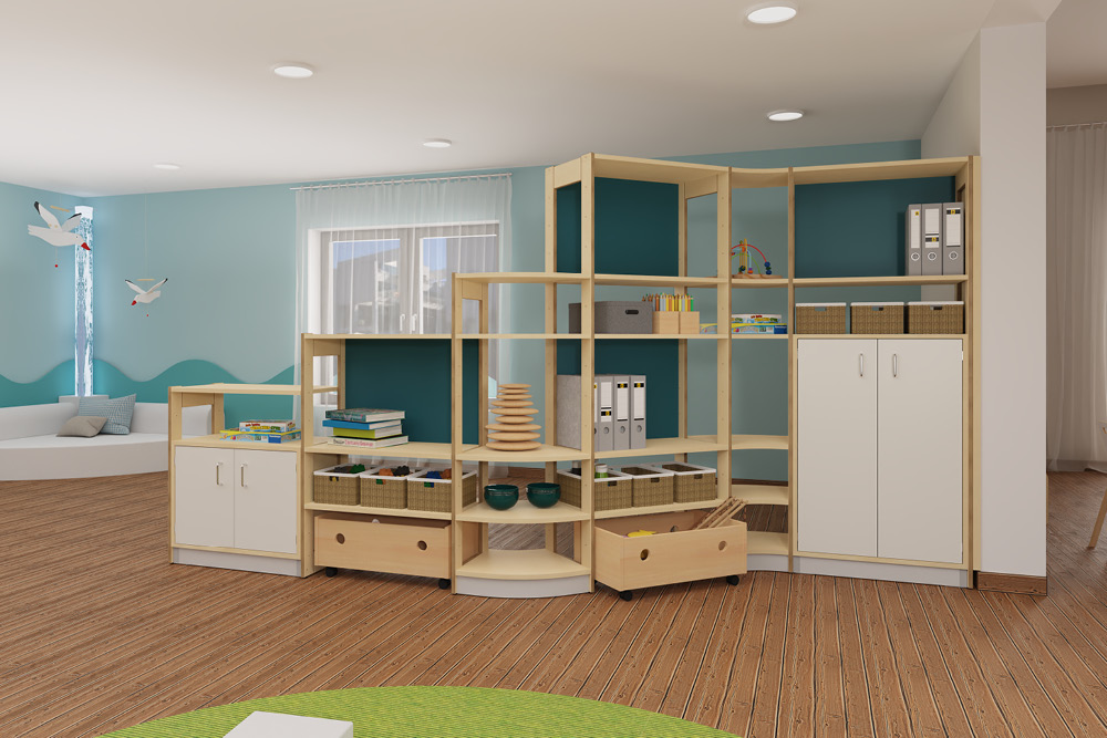 • Buet grunnform takket være 45° segmenter, øker hyllehøyden